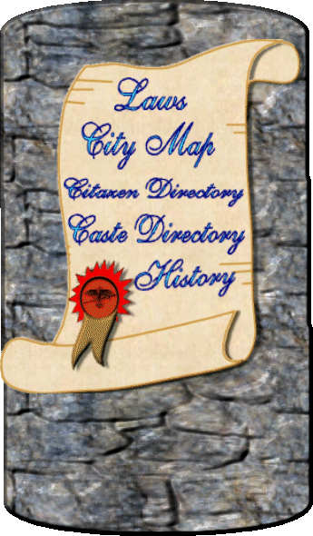To help you along the way you are directed to the posting board in the center of Silver Street, the main road your weary feet followed into the city. There the laws and information for the cities visitors are posted as well as places to visit and accommodations for your party.